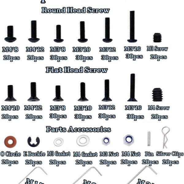 • 1710Pcs Larger Quantity: Various M2 M3 M4 Screws with Nuts and Flat Washers Meet All Demands: Nice set screw assortment kit. M2 Bolts: 4mm 6mm 8mm 12mm 16mm 20mm 25mm; M3 Bolt: 4mm 8mm 12mm 16mm 18mm 20mm 30mm; M4 Bolt: 6mm 8mm 10mm 14mm 18mm 20mm 30mm