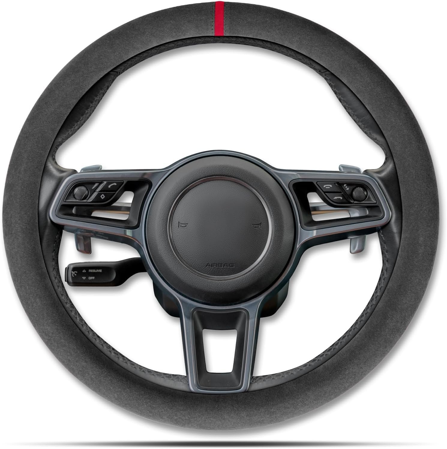 - Unique design: three styles and colors, this one is Black (Red Mark)-Regular Style, bring you a better visual experience. Beautiful and sturdy packaging to safely ship the steering wheel cover to you.